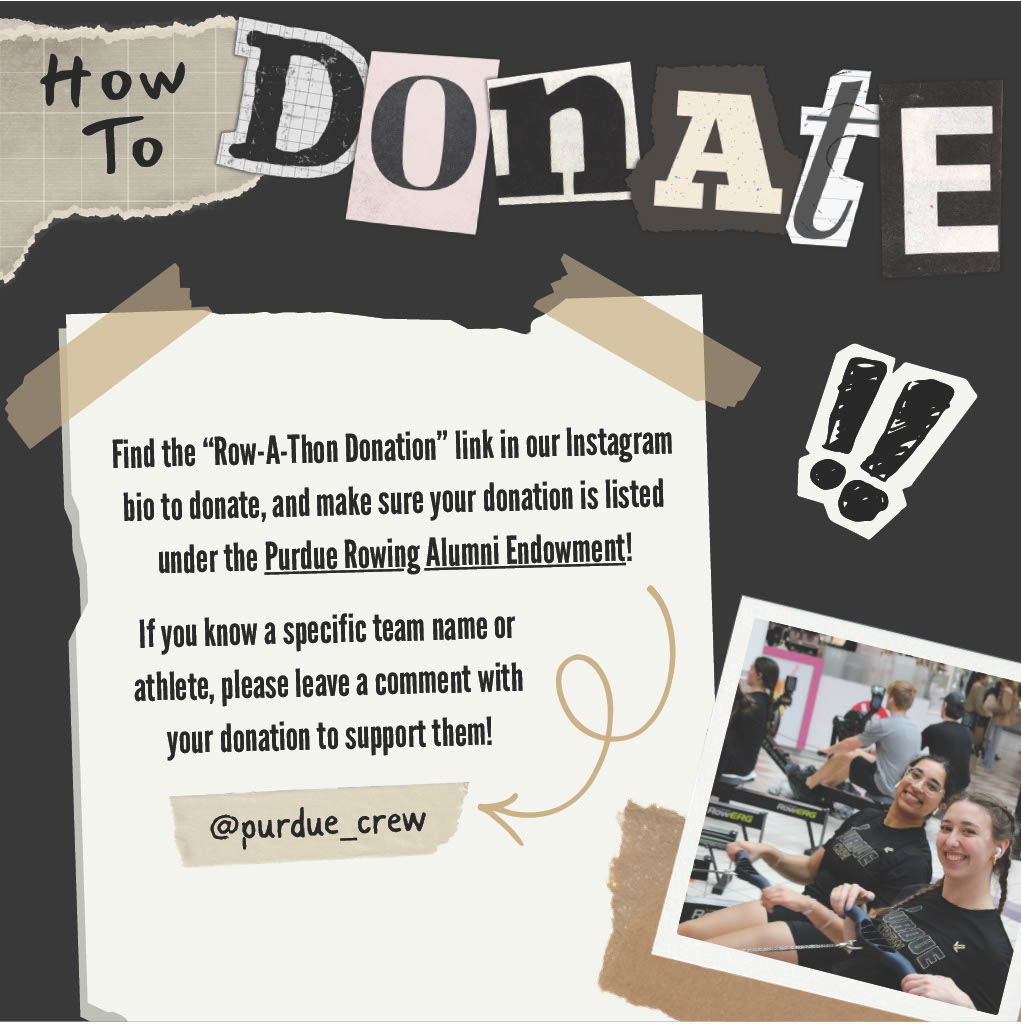 Please consider donating to support Purdue Crew and Lafayette Urban Ministries during the Row-A-Thon Campaign! If the donation is for a rower, please include the rower's name in the donation memo. Your contribution, no matter the size, will make a world of difference!